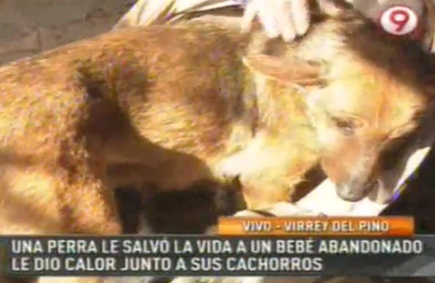 El pequeño, de nombre Santino, fue abandonado en el patio de una casa en la localidad de Virrey del Pino dentro de un cochecito. La perra halló al niño y lo cobijó con su cuerpo de la misma forma que a sus crías, salvándolo de morir de frío.