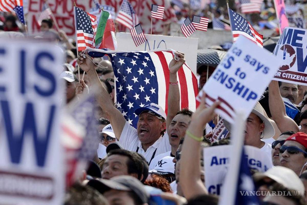 Cientos de manifestantes acompañaron con consignas como "Republicanos, recuerden, votamos en noviembre", y el ya tradicional coreo de frases como "aquí estamos y no nos vamos, y si nos echan, nos regresamos" así como "Sí se puede!".