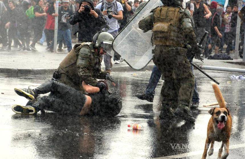 Chile.- Miles de estudiantes chilenos marcharon este jueves por el centro de esta capital para demandar una educación gratuita y de calidad, protesta que finalizó con violentos choques entre manifestantes y la fuerza pública.