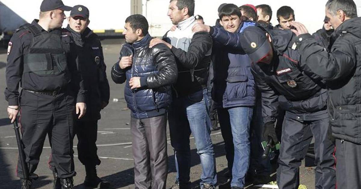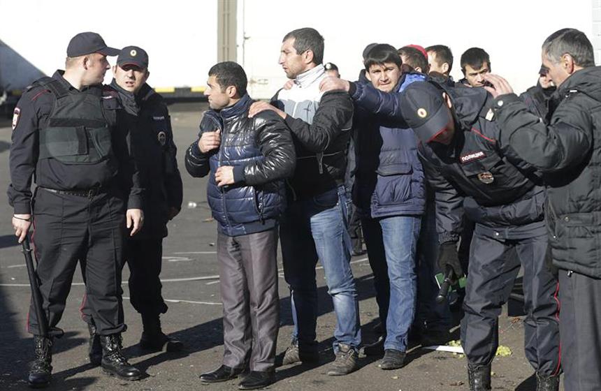 Los habitantes locales acusan a las autoridades de Moscú de no reaccionar ante las tensiones étnicas en la zona. Pero tras los disturbios en la noche del domingo, las autoridades respondieron hoy con dureza, con una redada a un mercado gestionado por inmigrantes que también fue asaltado por una multitud de nacionalistas. Las fuerzas de seguridad registraron el mercado y detuvieron a unos 1.200 trabajadores de forma provisional para revisar su documentación.