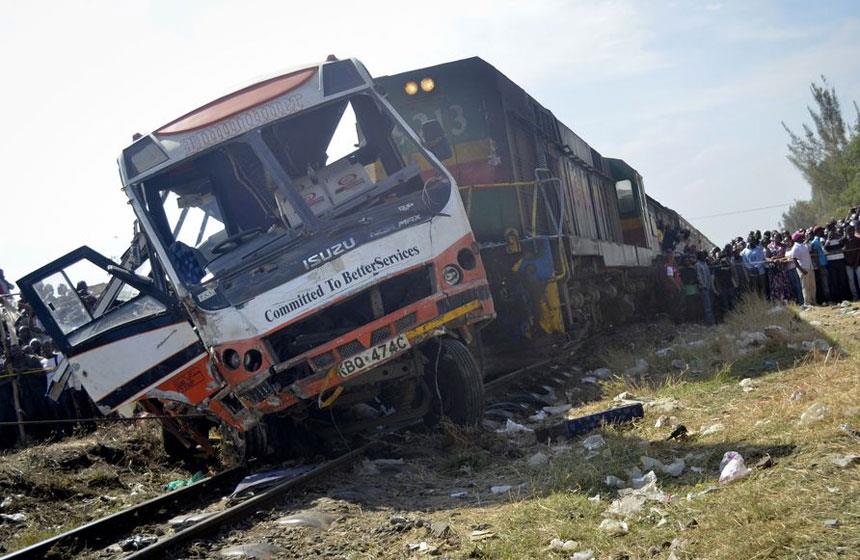 El tren con destino al suburbio de Dandora en el este de la capital, alcanzó al autobús en un paso a nivel en la parada cercana al mercado de Mutindwa, en el distrito oriental de Umoja.