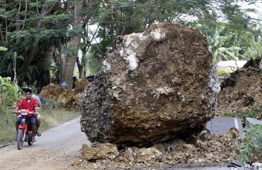 Los equipos de rescate tuvieron problemas para llegar a las localidades afectadas, porque corrimientos de tierra y grandes rocas bloqueaban muchas carreteras en Bohol, situada unos 640 kilómetros al sur de Manila.