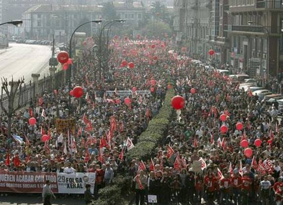 En una multitudinaria manifestación, como colofón de la huelga que paralizó prácticamente todo el país, laUnión General de Trabajadores (UGT) y Comisiones Obreras (CC.OO.) emplazaron a Rajoy a rectificar su impugnada reforma del mercado de trabajo.
