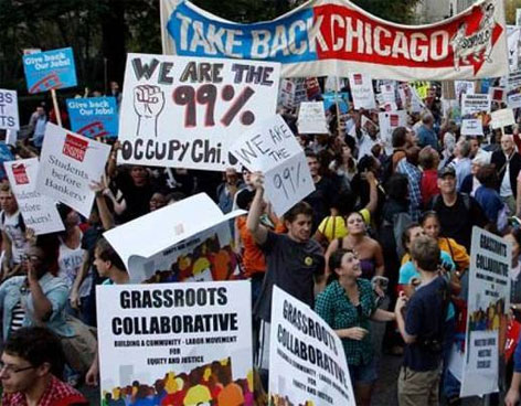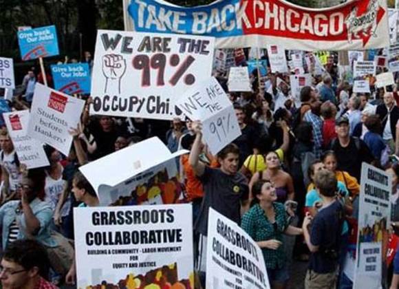 De acuerdo con los "indignados", los gobiernos de Obama y del alcalde de Chicago, Rham Emanuel, organizaron la cumbre de Premios Nobel de la Paz para acallar críticas al encuentro de la Organización del Tratado del Atlántico Norte (OTAN) de mayo próximo.