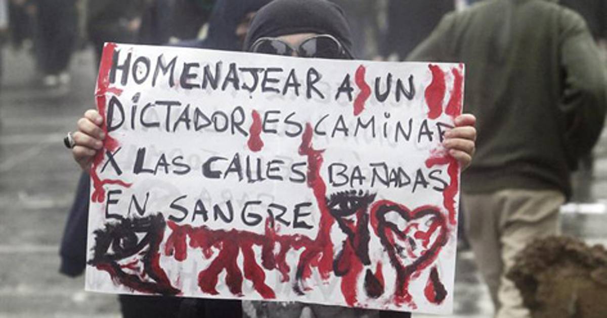 "La gente sale a la calle a decir no al dictador", declaró la presienta de la AFDD, Lorena Pizarro, en relación con las manifestaciones en contra del acto.