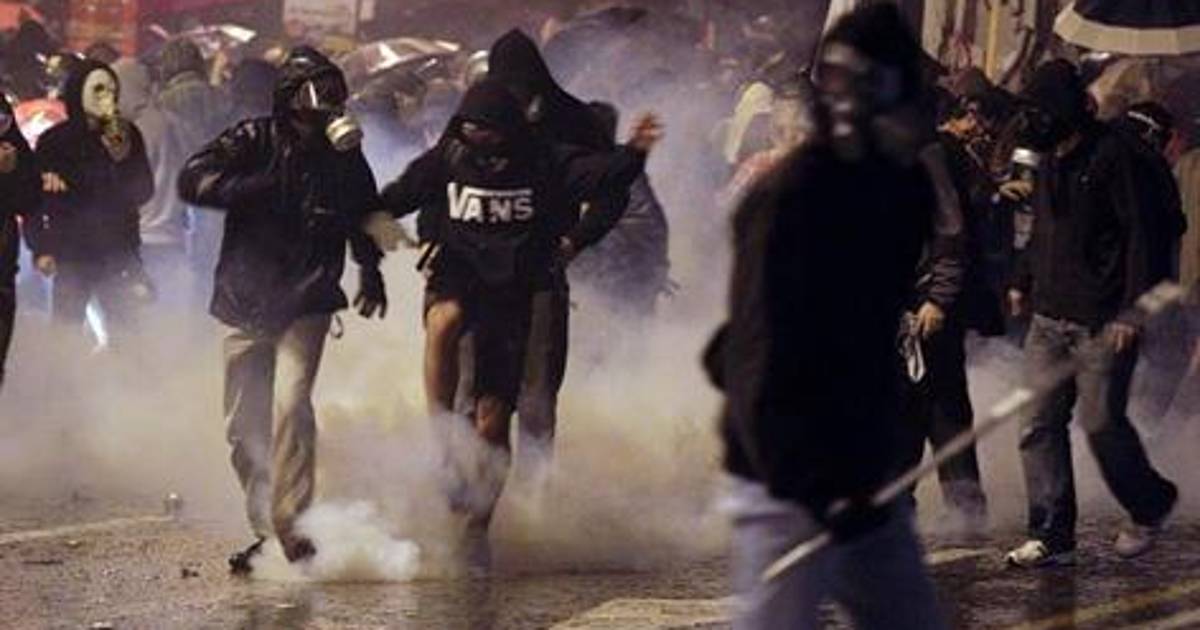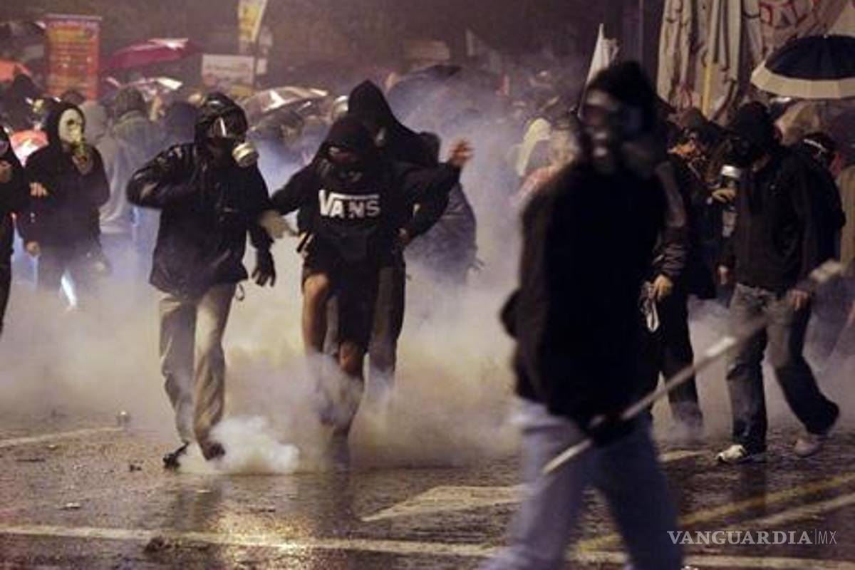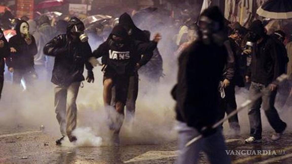 Los choques comenzaron sobre las 17:15 GMT cuando un grupo de manifestantes arrojó petardos y un cóctel incendiario contra los agentes, que contestaron lanzando gases lacrimógenos.