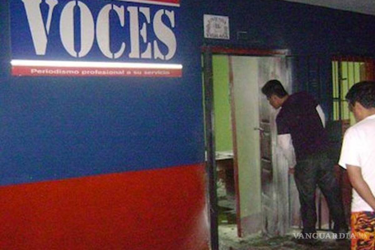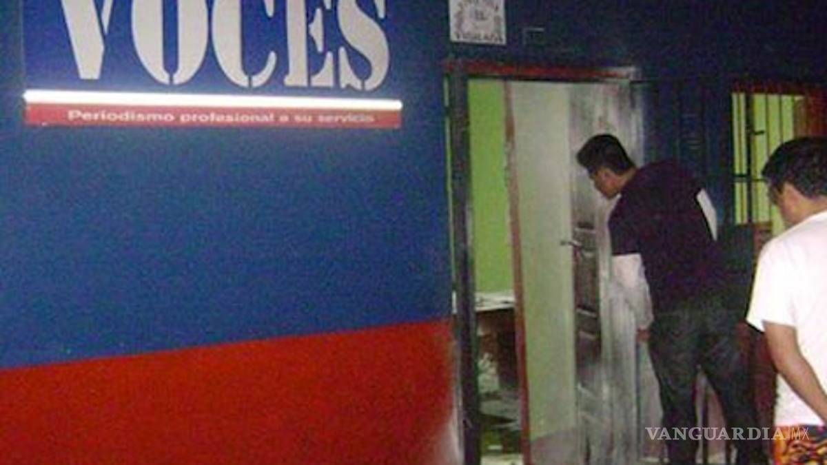 Tres individuos no identificados por la policía lanzaron la madrugada del sábado tres bombas Molotov contra oficinas de Voces en Tarapoto, a 620 kilómetros al noreste de Lima