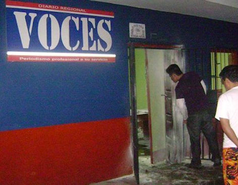 Según entrevistas de CPJ a periodistas del diario, tres individuos no identificados por la policía lanzaron la madrugada del sábado tres bombas Molotov contra oficinas de Voces en Tarapoto, a 620 kilómetros al noreste de Lima.