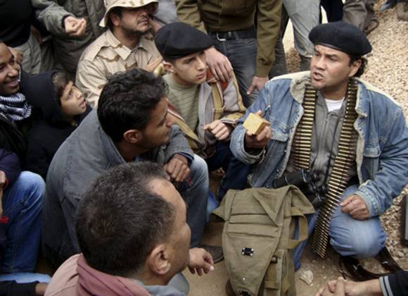 Los testigos dijeron a The Associated Press que vieron dos aeronaves bombardear la parte este del poblado de Ajdabiya a las 10:00 horas del miércoles. Agregaron que las fuerzas a favor de Gadafi avanzan en el poblado, que se encuentra aproximadamente a 750 kilómetros (470 millas) al este de Trípoli.