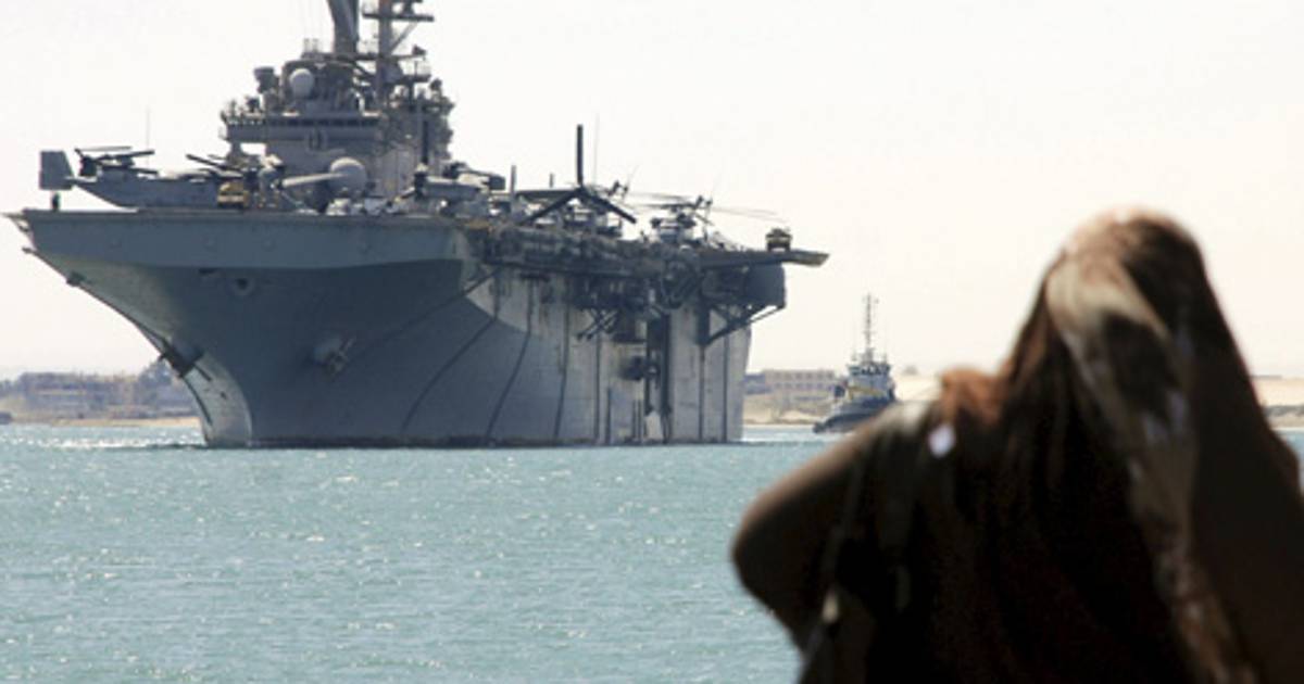 Los barcos de asalto anfibio USS Kearsarge y USS Ponce entraron en el canal el miércoles por la mañana procedente del Mar Rojo, indicaron los funcionarios. El Kearsarge transporta 42 helicópteros.