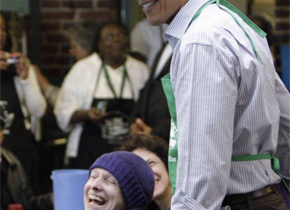 Obama, su esposa Michelle y su familia visitaron los cuarteles del grupo 'Para que Otros Puedan Comer' (SOME, por su sigla en inglés) y repartieron comida entre personas de bajos ingresos de la capital estadunidense.