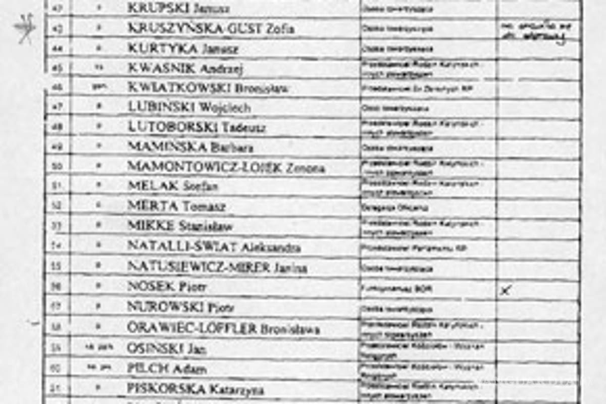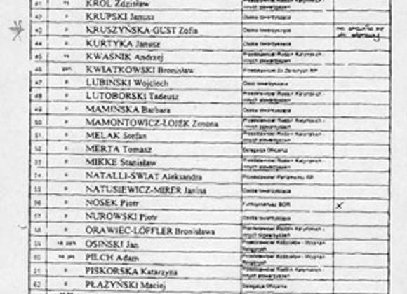 En el accidente áereo ocurrido en el aeropuerto ruso de Smolensk, viajaban varios diplomáticos polacos. Algunos de los muertos en la caída del avión presidencial, según el Partido Derecho y Justicia del presidente Lech Kaczynshi son: