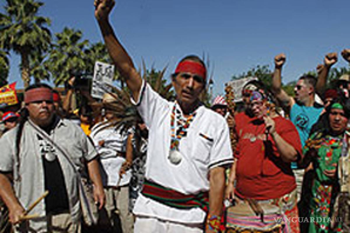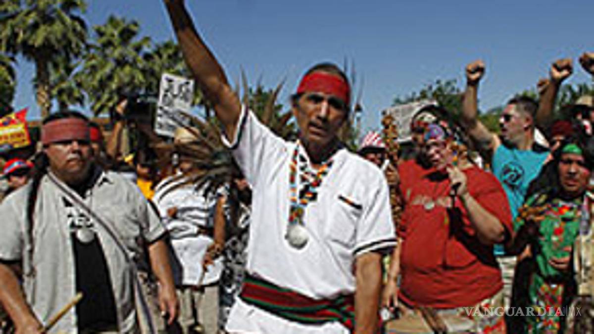 Una especie de mística indigenista flota en el movimiento hispano organizado en contra de la nueva ley de inmigración de Arizona. "Hasta ahora los indios iban a lo suyo y es la primera vez que se unen a algo más", señala uno de los dirigentes locales de la lucha contra la legislación SB1070. La manifestación que el sábado recorrió las calles de Phoenix arrancó con una ceremonia india y sus representantes fueron los primeros que intervinieron desde la tribuna. Esa inspiración indigenista trata de conectar con discursos como el del boliviano Evo Morales; pero también es cierto que el peso de nativos americanos, de los indios, es enorme en Arizona. En este Estado, viven 21 tribus diferentes y un cuarto de sus tierras totales son reservas indias y en este movimiento en defensa de los sin papeles se cruzan los carteles de Gerónimo, el rebelde Apache que luchó por estos desiertos, con Zapata.