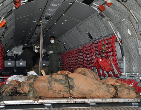 Tras la llegada del avión, en donde también venían otros cuerpos de guerrilleros muertos en la "Operación Sodoma", los restos fueron trasladados a vehículos especiales en los que fueron llevados al Instituto de Medicina Legal