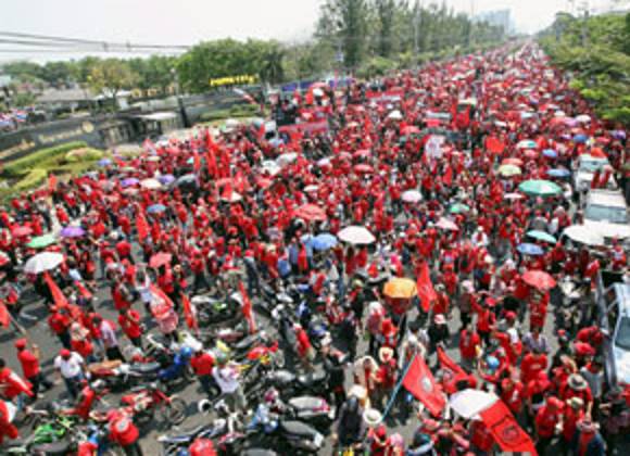 14 de marzo de 2010.- Unos 100.000 "camisas rojas", como se conocen a los miembros del Frente Unido, dan al Gobierno 24 horas para disolver el Parlamento y convocar elecciones.