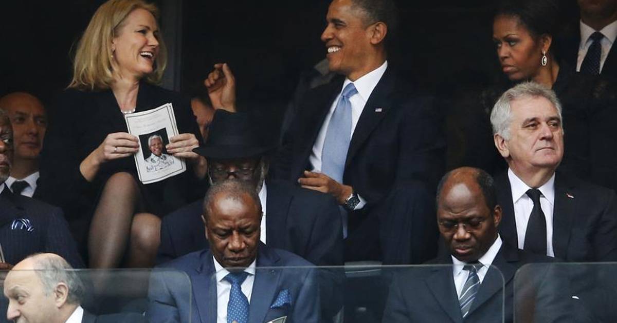 Al menos eso es lo que dicen cientos de usuarios de redes sociales en alusión a una serie de fotografías en las que Obama y la primera ministra de Dinamarca, Helle Thorning-Schmidt, departen alegremente, mientras la primera dama estadunidense observa la charla con cara adusta.
