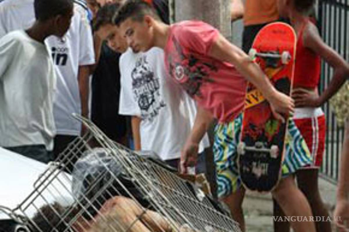 Son las dos y media. Algo más adelante, a unos 250 metros de la entrada a la favela, hago mi última parada. En el flanco izquierdo de la calle distingo una pequeña plaza vallada y rodeada por pequeños bares y puestos de comida, la mayoría ya cerrados. El hecho me llama la atención y me acerco a uno delos únicos locales que funcionan para preguntar por qué casi nadie está trabajando. El encargado, de unos 50 años, se afana en la preparación de unos helados para un par de chicas, una adolescente y otra que no llega a los 10 años. Tras presentarme, menciono la situación del fin de semana y pregunto si es cierto que parte de la invasión protagonizada por la banda criminal Comando Vermelho se produjo por aquel acceso principal. "No hubo ninguna invasión. Fueron los policías militares los que los trajeron hasta aquí en el interior del caveirao (carro blindado), y luego los soltaron", me responde la adolescente, sin ocultarme su malestar por mi presencia. El comentario es absurdo y suena a la versión de los hechos de los criminales locales. La chica retrocede unos pasos y comenta algo con un muchacho de su misma edad que está presente en el lugar. No alcanzo a oír lo que dicen.