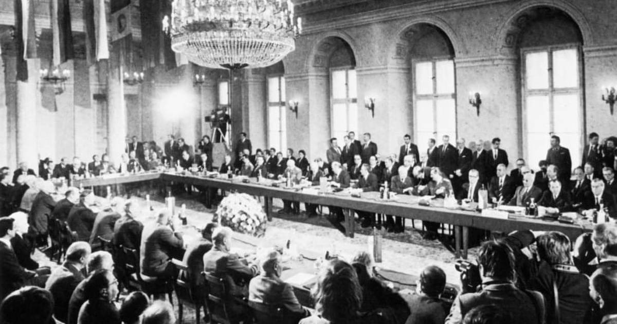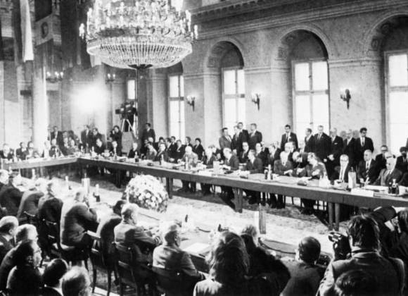 Los antecedentes históricos se remontan a 1954 cuando los ministros de Exteriores de la URSS, EEUU, Reino Unido y Francia se reunieron en Berlín en una conferencia donde la parte soviética presentó un proyecto de “Acuerdo General de Seguridad Colectiva en Europa”.