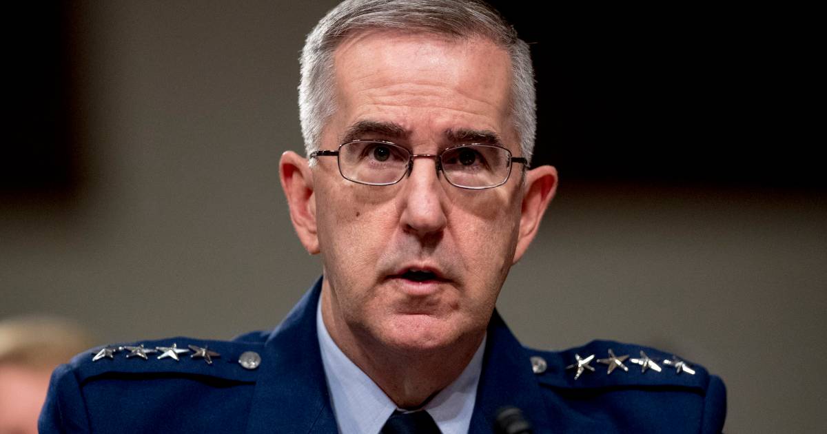 La oficial dijo a The Associated Press que el general John Hyten la sometió a una serie de contactos sexuales no deseados al besarla, abrazarla y frotarse contra ella en 2017 cuando era una de sus asistentes. La oficial dijo que el general intentó descarrilar su carrera militar después de rechazarlo.