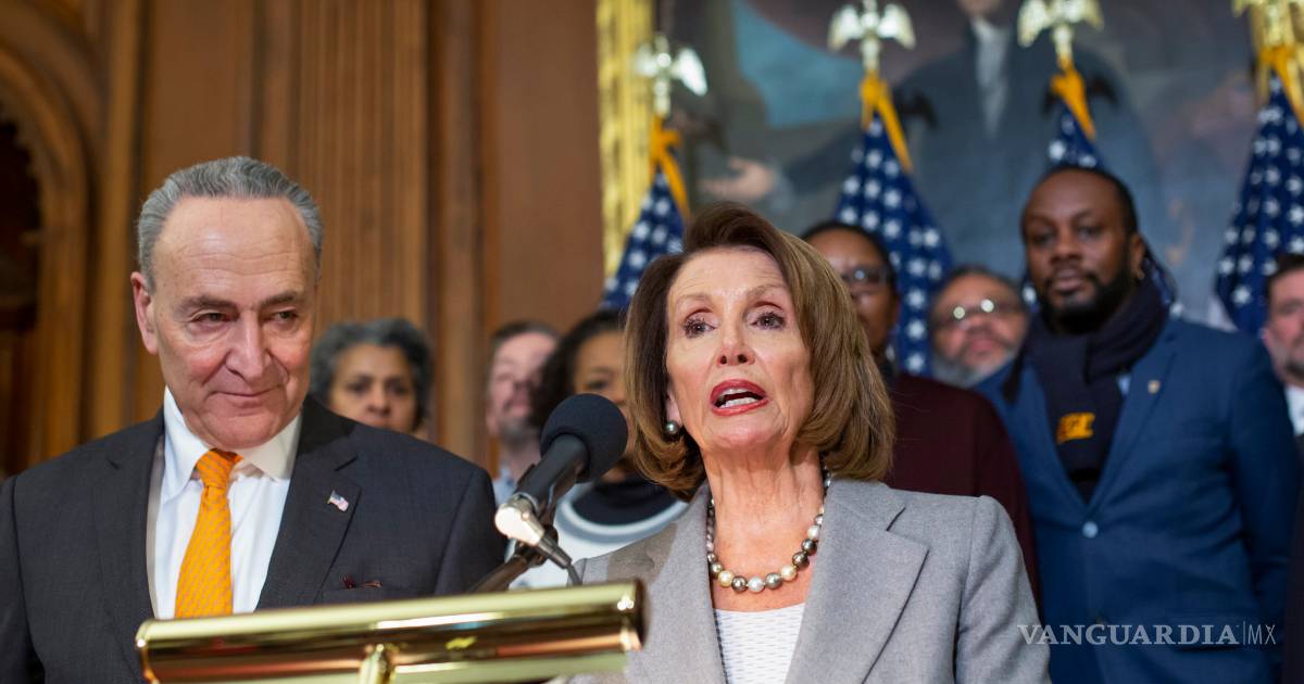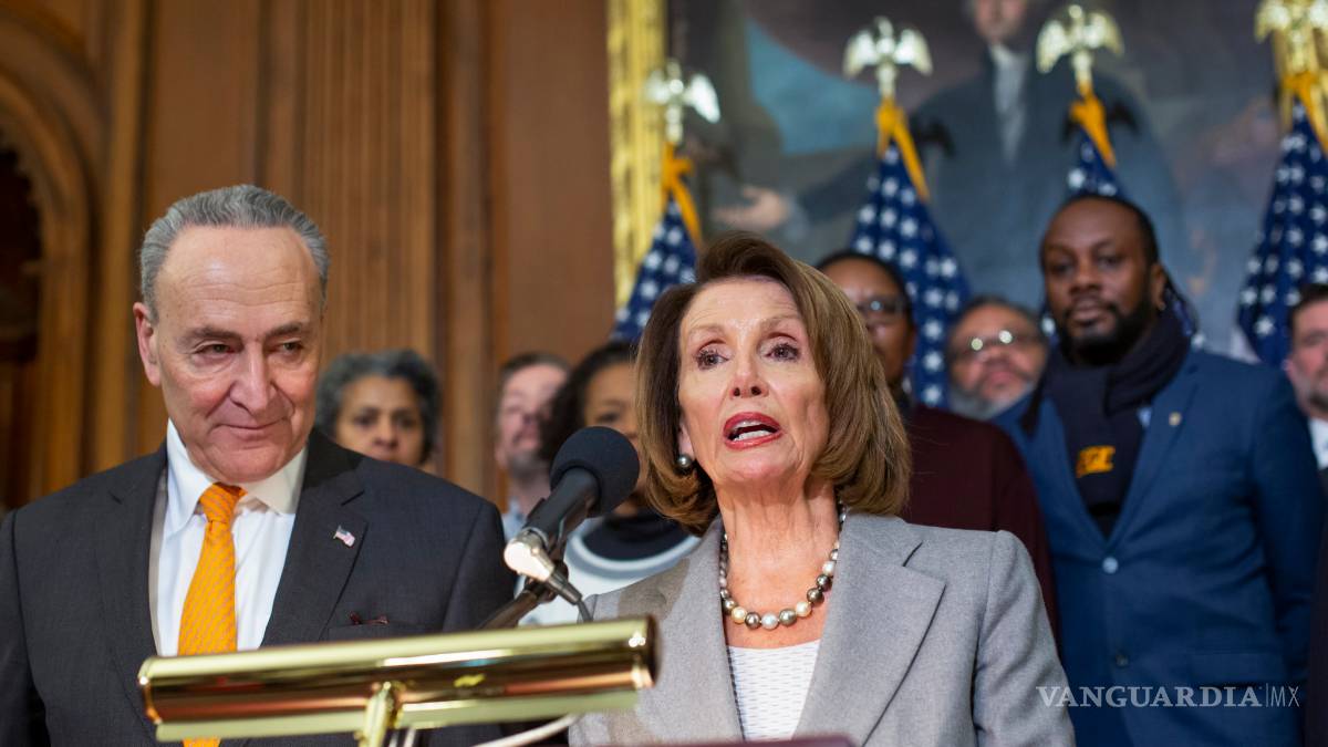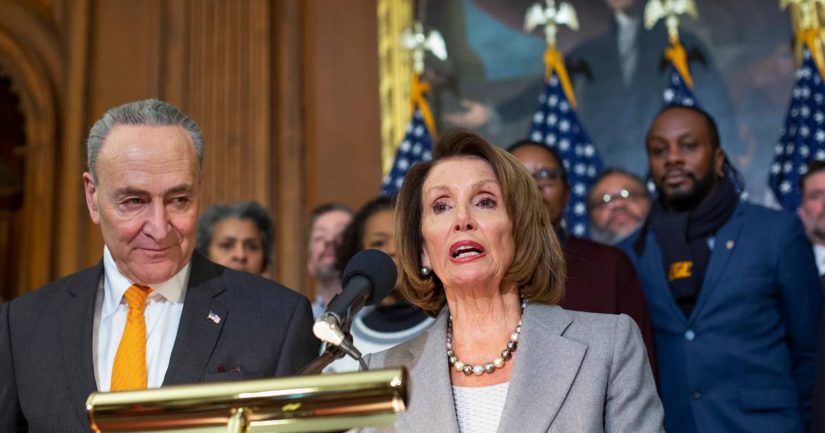 Parado junta a ella, el líder de la minoría senatorial Chuck Schumer dijo que el símbolo de Estados Unidos “debería ser la Estatua de la Libertad, no un muro de 30 pies”. Acusó a Trump de “azuzar el miedo y desviar la atención” del torbellino de su gobierno.