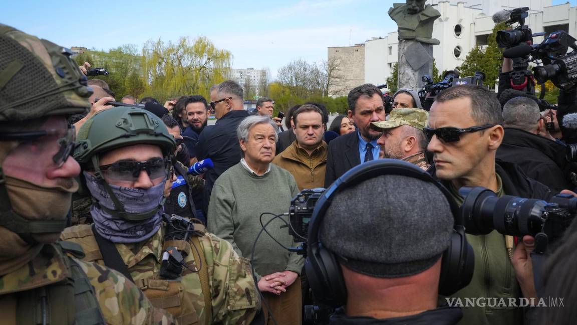 En su visita a la ciudad ucraniana de Bucha el convoy del secretario general de la ONU se dirigió después a la fosa común, y estando ahí un sacerdote le explicó cómo la encontraron llena de cadáveres. “Cuando veo este sitio horroroso siento lo importante que es la investigación y la rendición de cuentas”, dijo Guterres.
