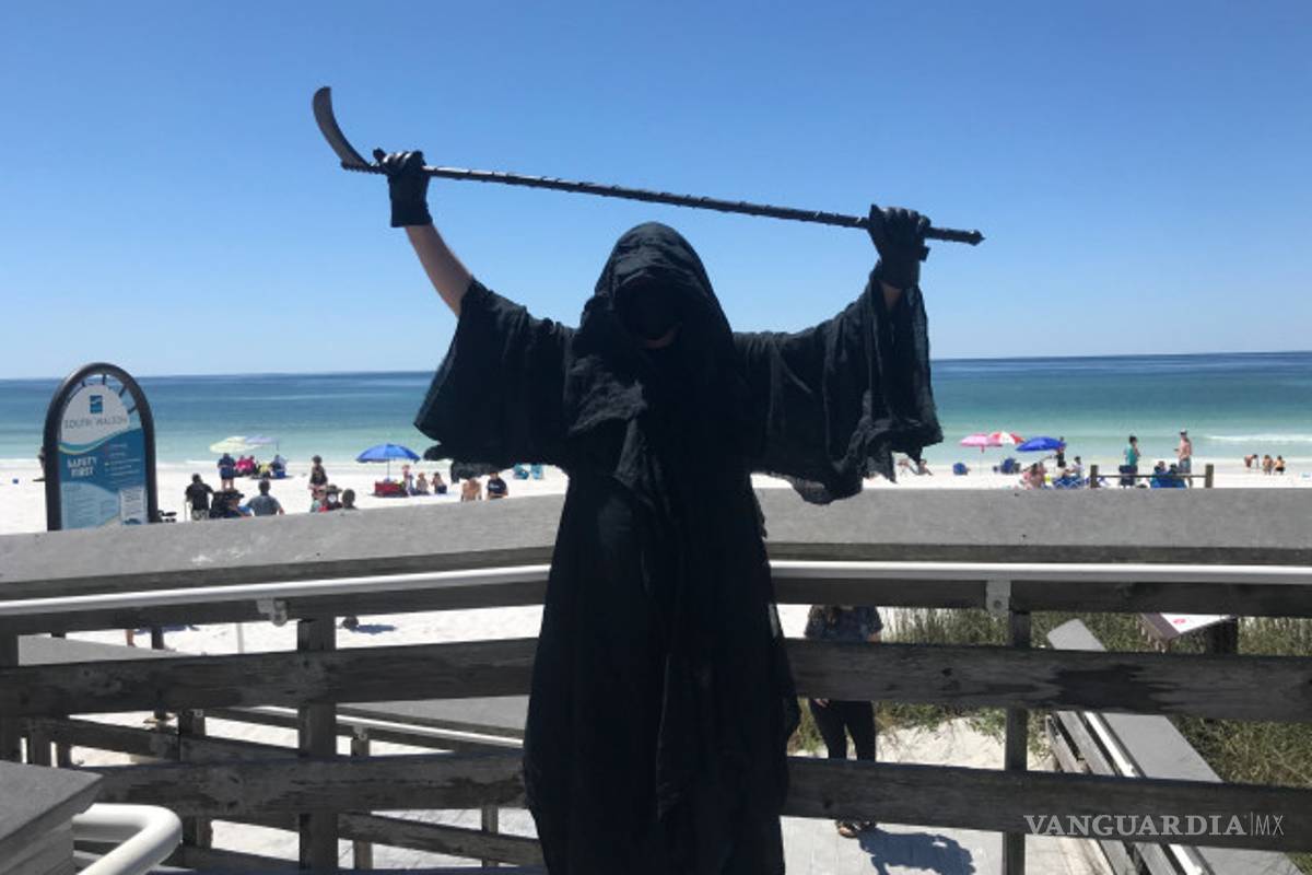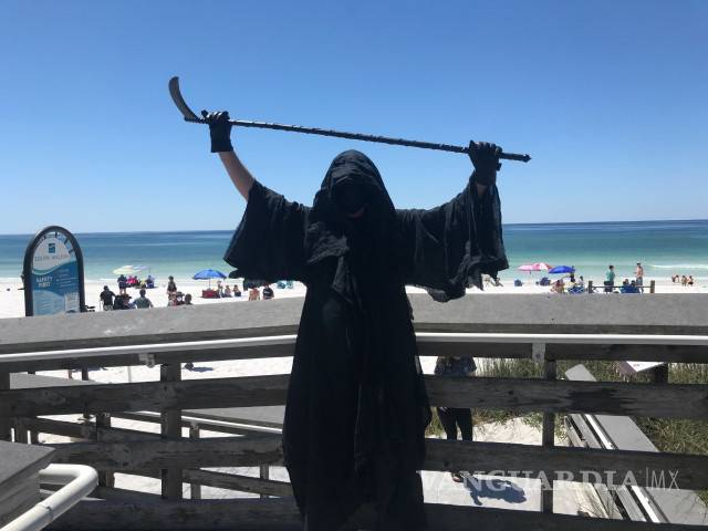 Aparece 'la muerte' en playa de Estados Unidos, para advertir a turistas