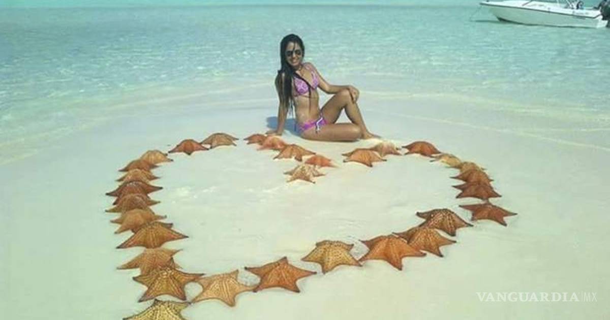 La imagen de una joven a la orilla de la playa ha indignado a los usuarios del Facebook pues en la misma, aparece posando con 31 estrellas de mar.