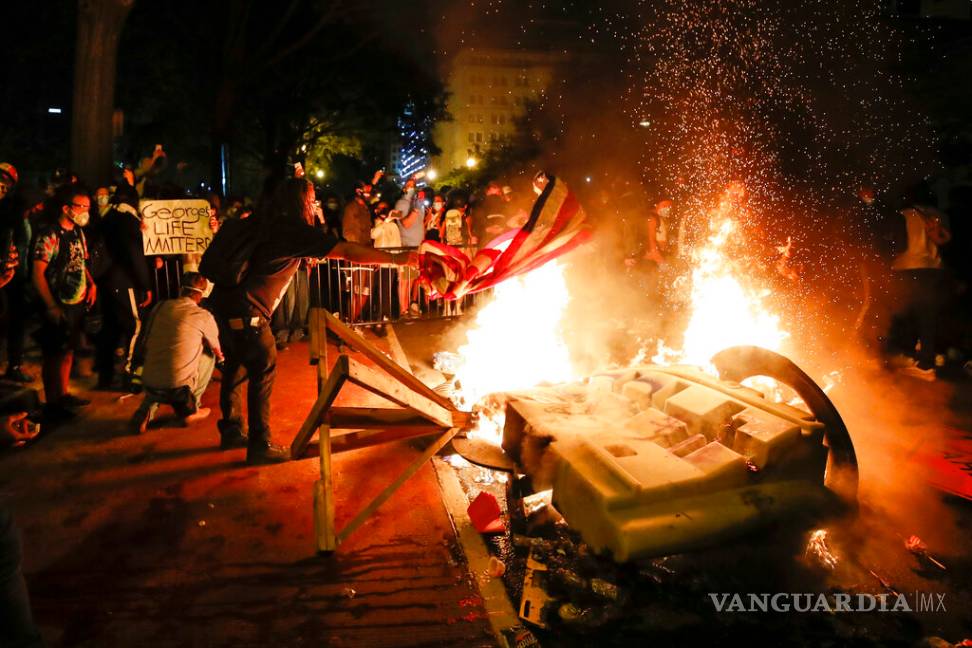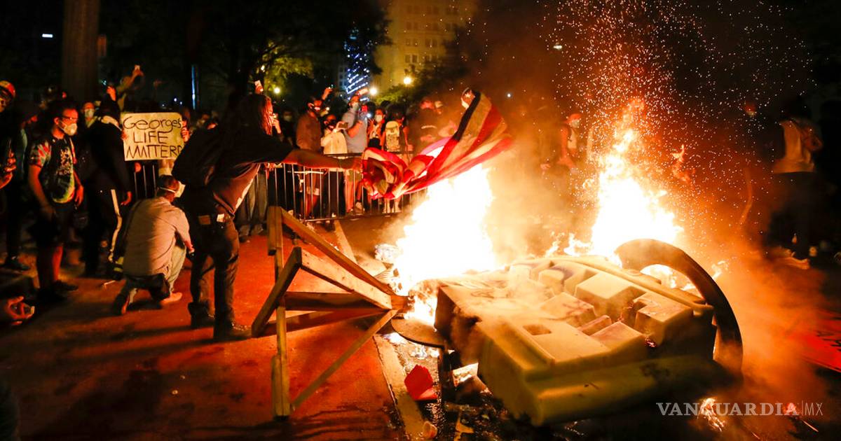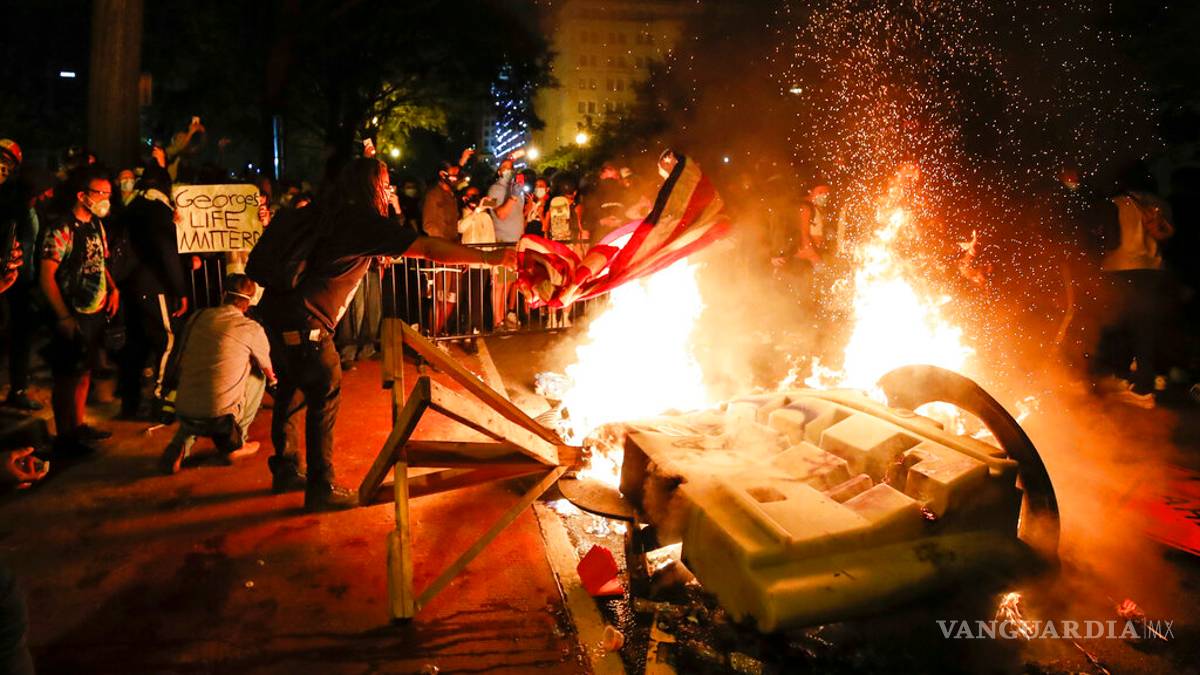Arden protestas en EU: queman la ‘Iglesia de los presidentes’ y una bandera estadunidense