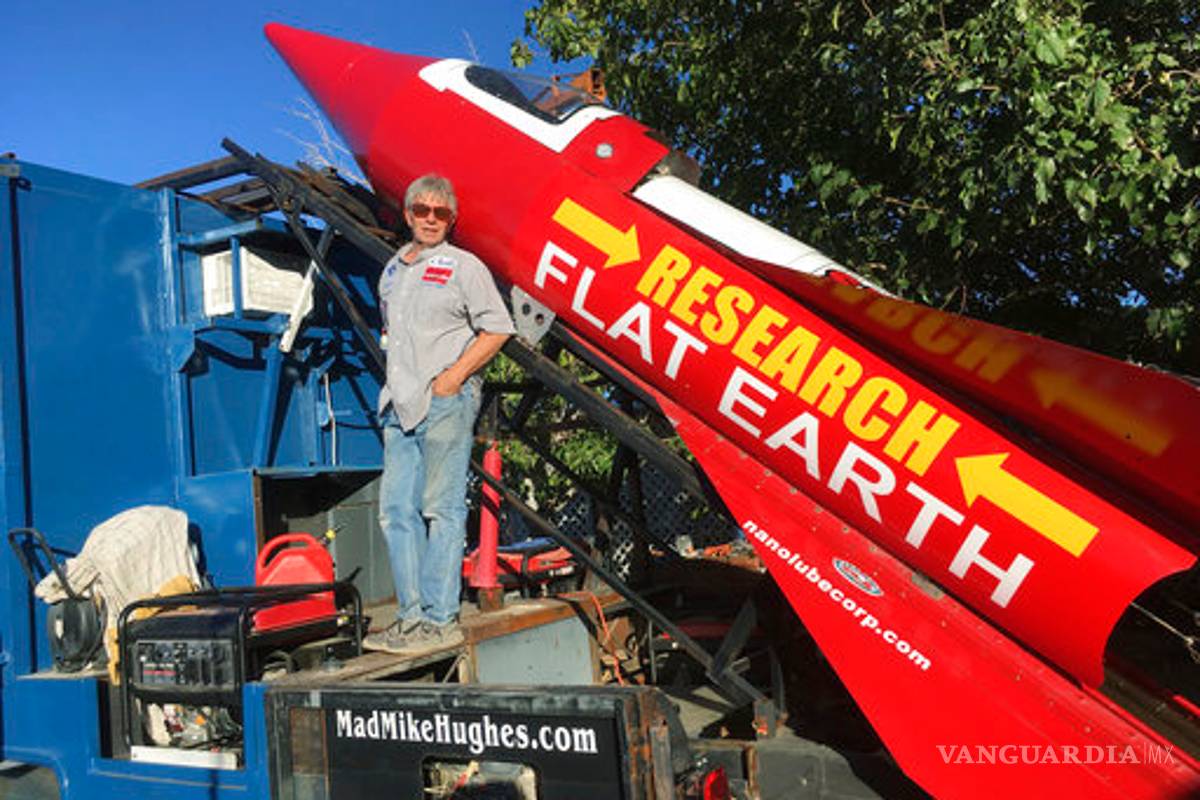 "No creo en la ciencia", afirmó Hughes, cuyo patrocinador principal del cohete es Research Flat Earth. "Conozco la aerodinámica y la dinámica de fluidos y cómo las cosas se mueven por el aire, aproximadamente el tamaño de las boquillas de los cohetes y el empuje, pero eso no es ciencia, es solo una fórmula. No hay diferencia entre ciencia y ciencia ficción".