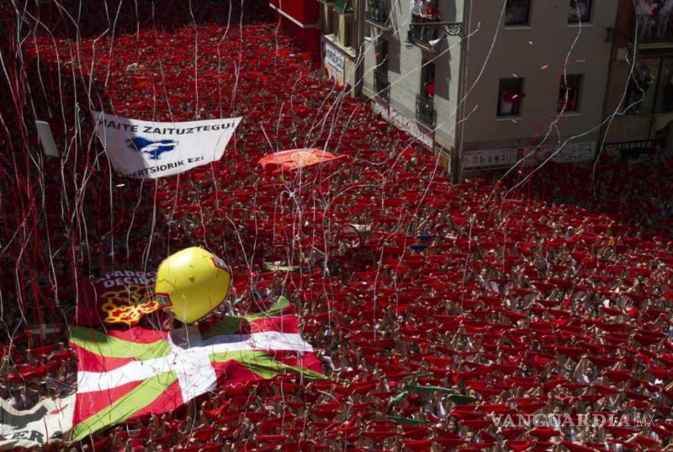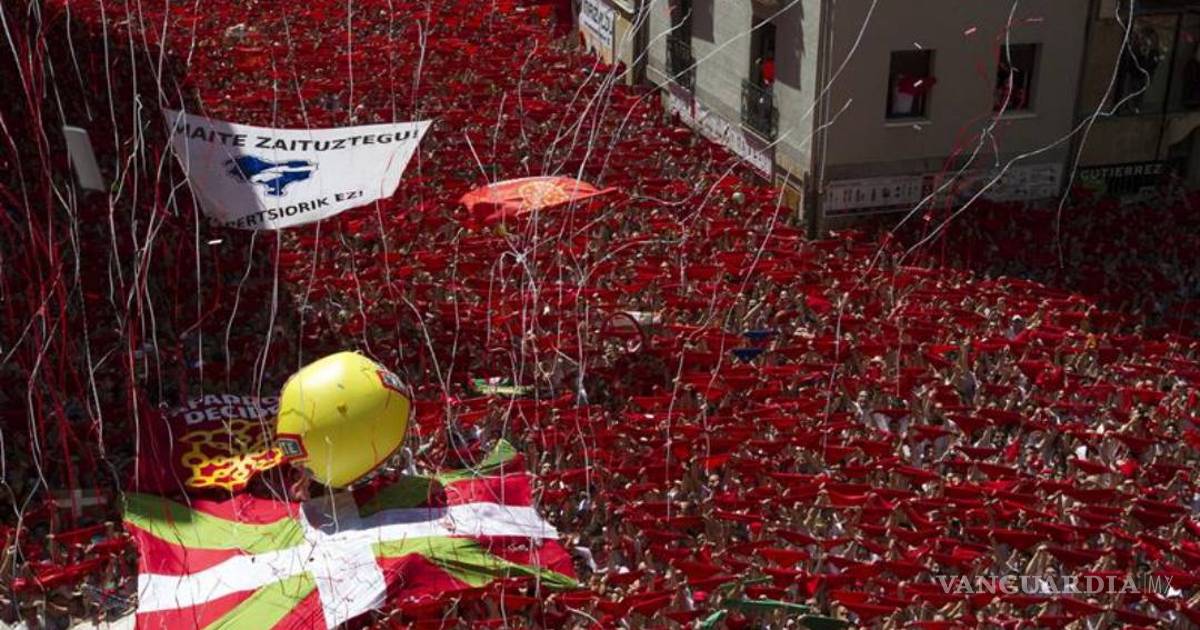 La plaza Consistorial de Pamplona, abarrotada de gente, estalló en ese momento una fiesta de camisas blancas y pañuelos rojos y las calles de la ciudad del norte de España se transformaron en un hervidero de personas.