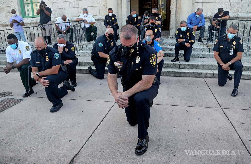 Agentes de la Policía de Miami y de otras ciudades se colocaron de rodillas para pedir perdón a los manifestantes, tras las protestas que se han desatado en varias ciudades de los Estados Unidos por la fuerte de Goerge Floyd a manos de un agente de la Policía de Minniapolis, Minnesota.