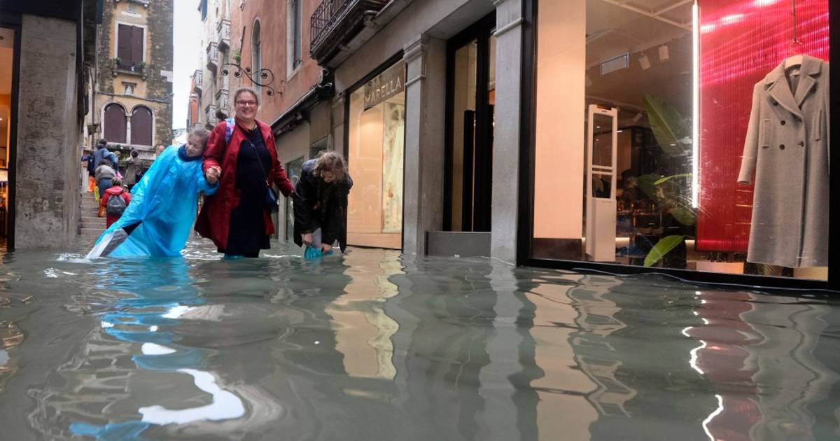 Turistas y vecinos tuvieron que calzar botas altas para recorrer las calles venecianas cuando los fuertes vientos elevaron el nivel del agua a 156 centímetros (más de 5 pies) sobre el nivel del mar antes de retroceder.