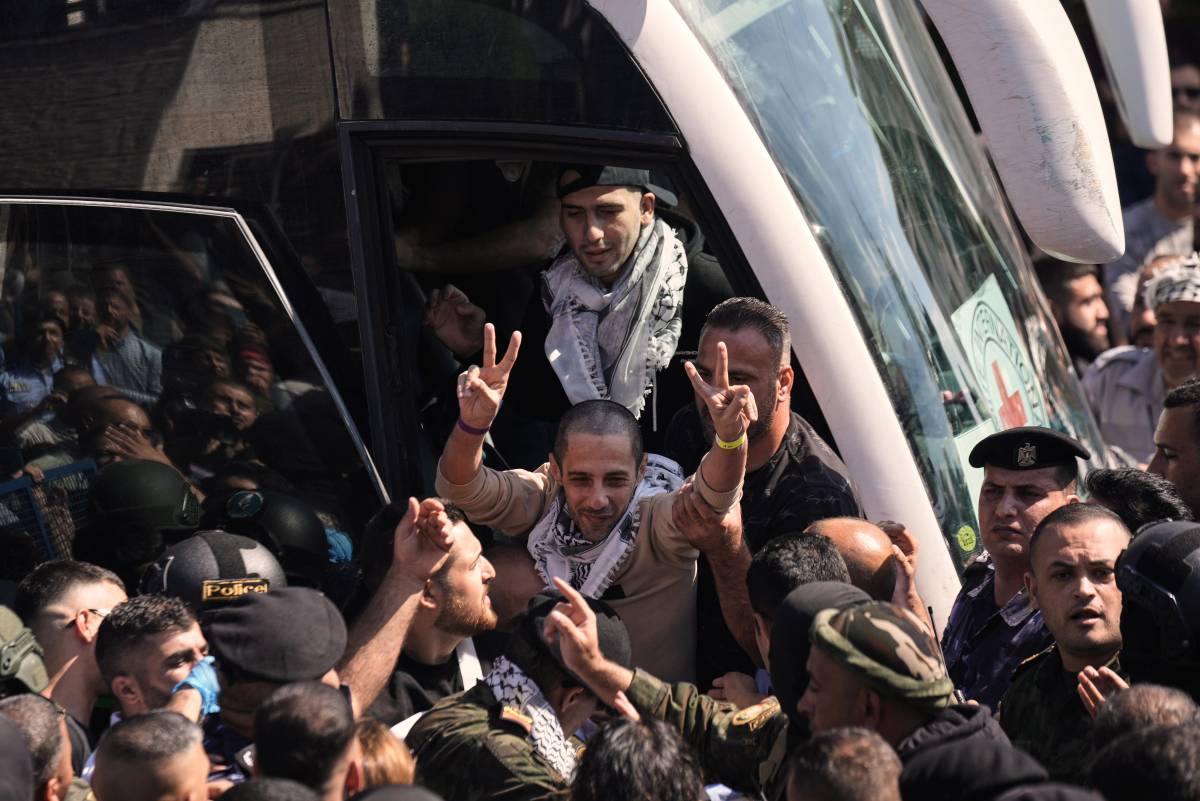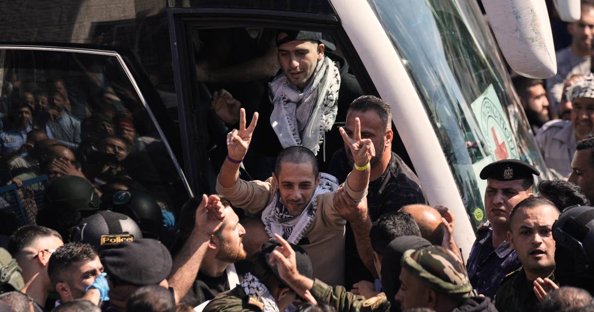 Cientos vitorearon cuando dos autobuses que transportaban a decenas de prisioneros liberados llegaron a Beitunia en la Cisjordania ocupada por Israel. Los hombres liberados, con la cabeza rapada, descendieron del autobús haciendo señales de victoria con los dedos; algunos fueron levantados sobre los hombros de la multitud, mientras que otros se hundieron en sillas cercanas, exhaustos.
