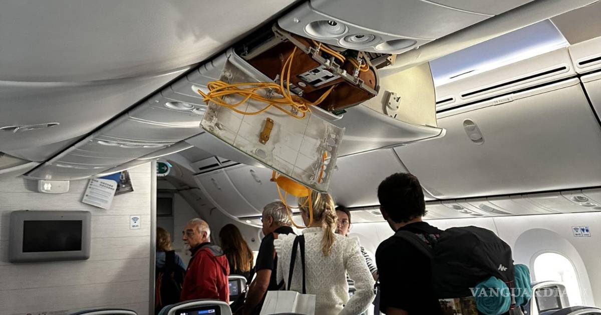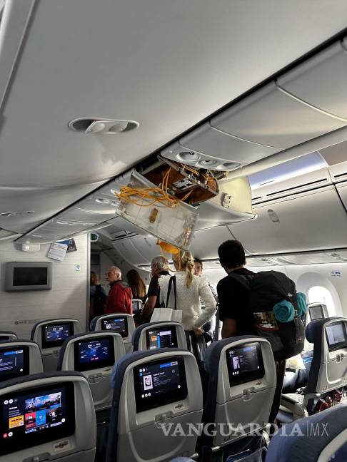 La nave Boeing BA.N 787-9 se transportaba desde Madrid, España, a Montevideo, Uruguay. Comparten videos de pasajeros lesionados y otros ayudando a hombre que quedó atorado en un compartimento superior