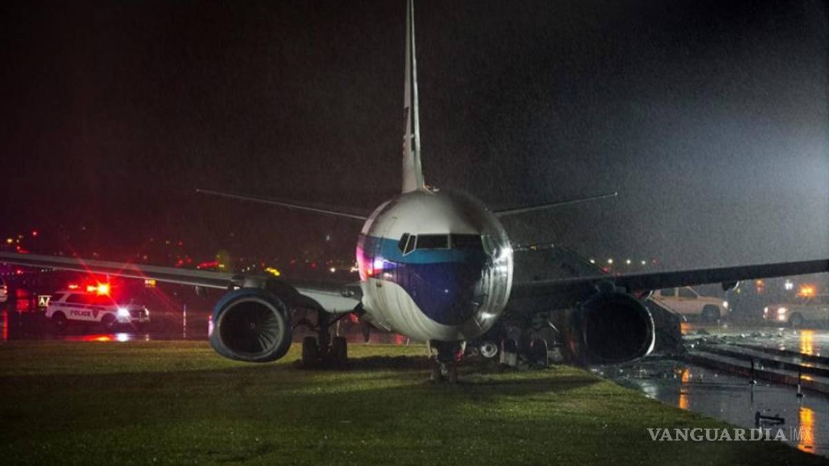 La aeronave patinó en medio de fuertes lluvias y acabó en la zona de césped que bordea la pista, reportó la emisora CNN.
