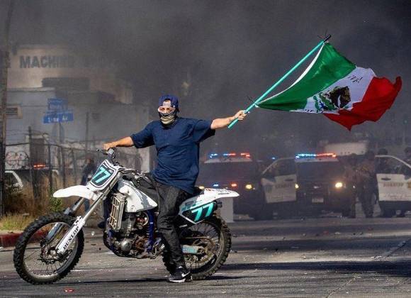 Políticos estadounidenses señalan que las banderas de México en medio de las protestas contra redadas migratorias refuerzan la idea de una invasión a Estados Unidos