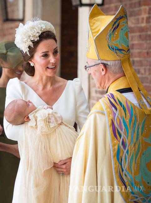 A su llegada, se pudo escuchar cómo Catalina —quien se mantuvo fiel al diseñador que ya había empleado para los dos bautizos anteriores, Alexander McQueen— describía al niño como “muy relajado y tranquilo” mientras hablaba con el arzobispo.