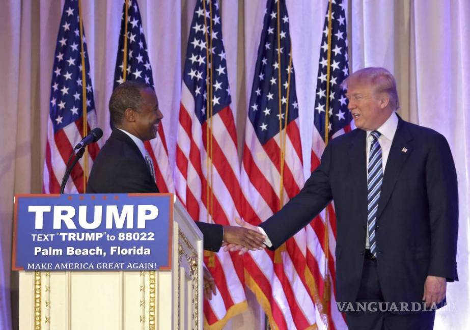 Carson hizo su anuncio junto a Trump en un acto en Palm Beach, en Florida, estado donde el próximo martes se celebran elecciones primarias, tanto en el campo republicano como el demócrata, que pueden ser decisivas para despejar el camino hacia la nominación de los candidatos que competirán por la Casa Blanca.