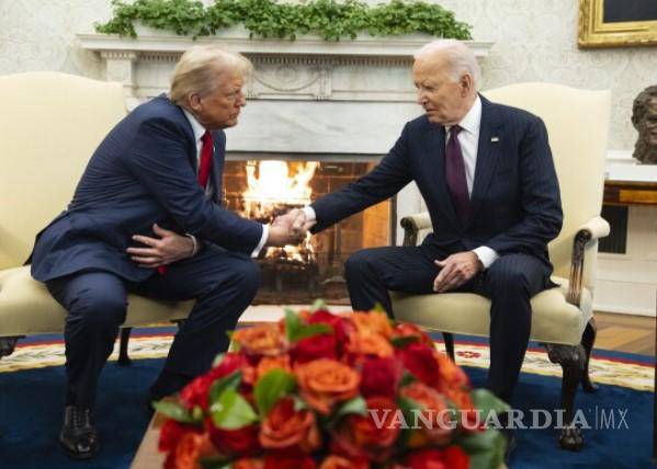 El presidente electo Donald Trump y el presidente Biden actuaron como viejos amigos en lugar de acérrimos rivales en la Oficina Oval el miércoles, estrechándose la mano e intercambiando cálidas palabras durante el primer viaje de Trump a Washington desde su victoria en la reelección.