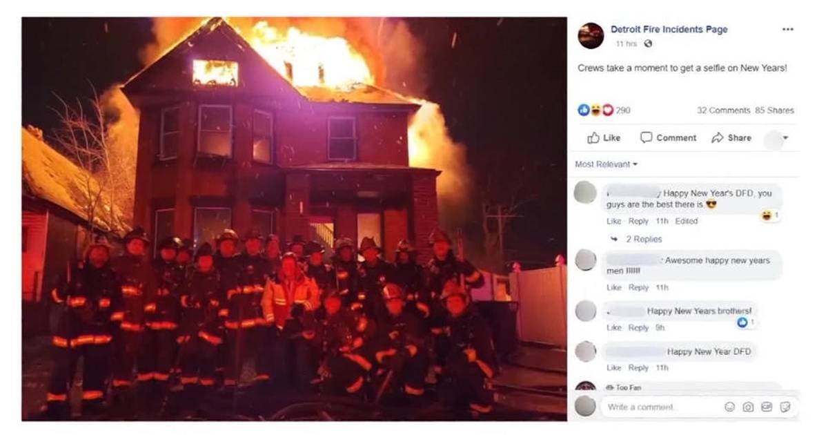 La fotografía se publicó el martes justo antes de la medianoche en la página “Detroit Fire Incidents Page” con el pie de foto: “¡Grupo se toma un momento para tomarse una selfie en Año Nuevo!”. Después fue eliminada de la cuenta.