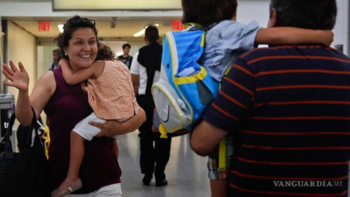 Los miembros de una familia recibieron con llanto a sus seres queridos en las áreas de equipaje de la terminal.