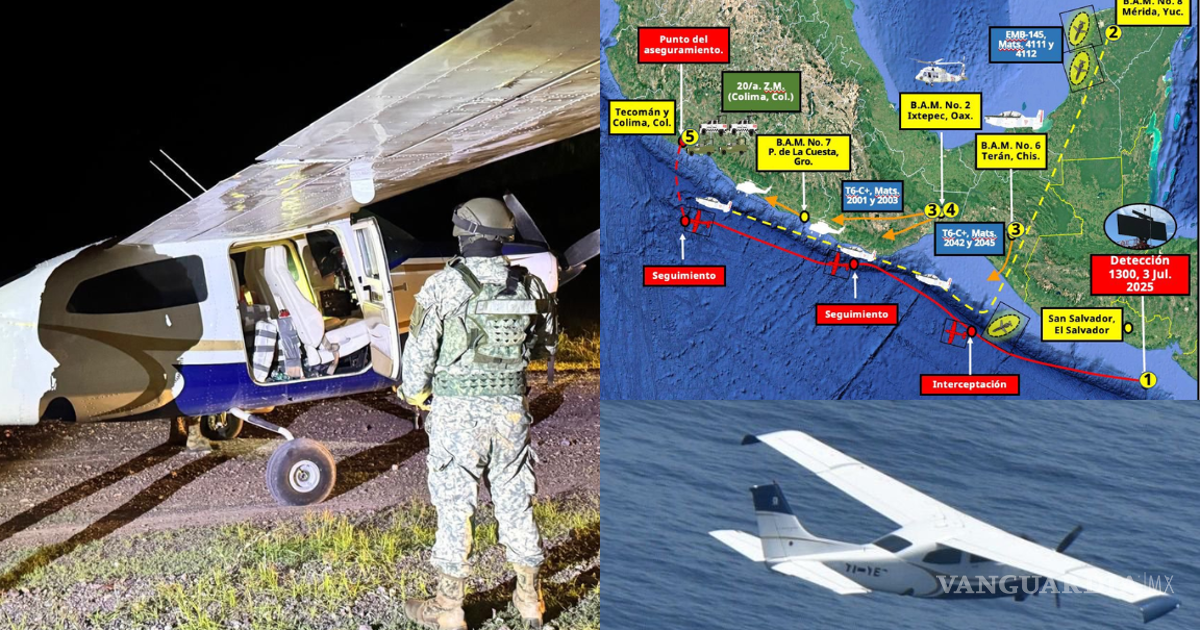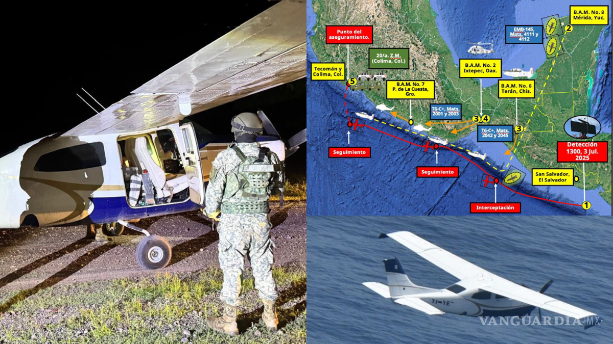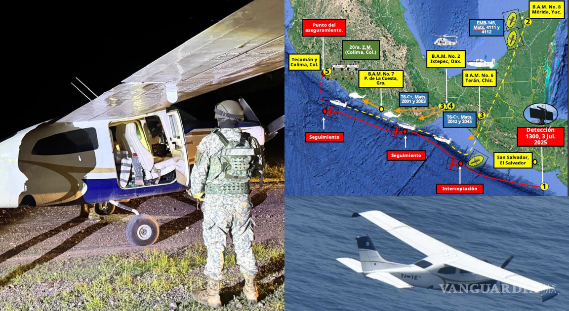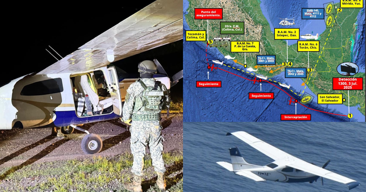 “El 3 de julio, a las 13:00 horas, personal del Centro Nacional de Vigilancia (CENAVI) detectó una traza de interés a 200 kilómetros al sur, a la altura de San Salvador, El Salvador”, explicó el secretario. “Ante esta información, el CENAVI ordenó el despegue de aeronaves desde distintas Bases Aéreas Militares para interceptar la traza clandestina hacia los sitios de probable aterrizaje”.