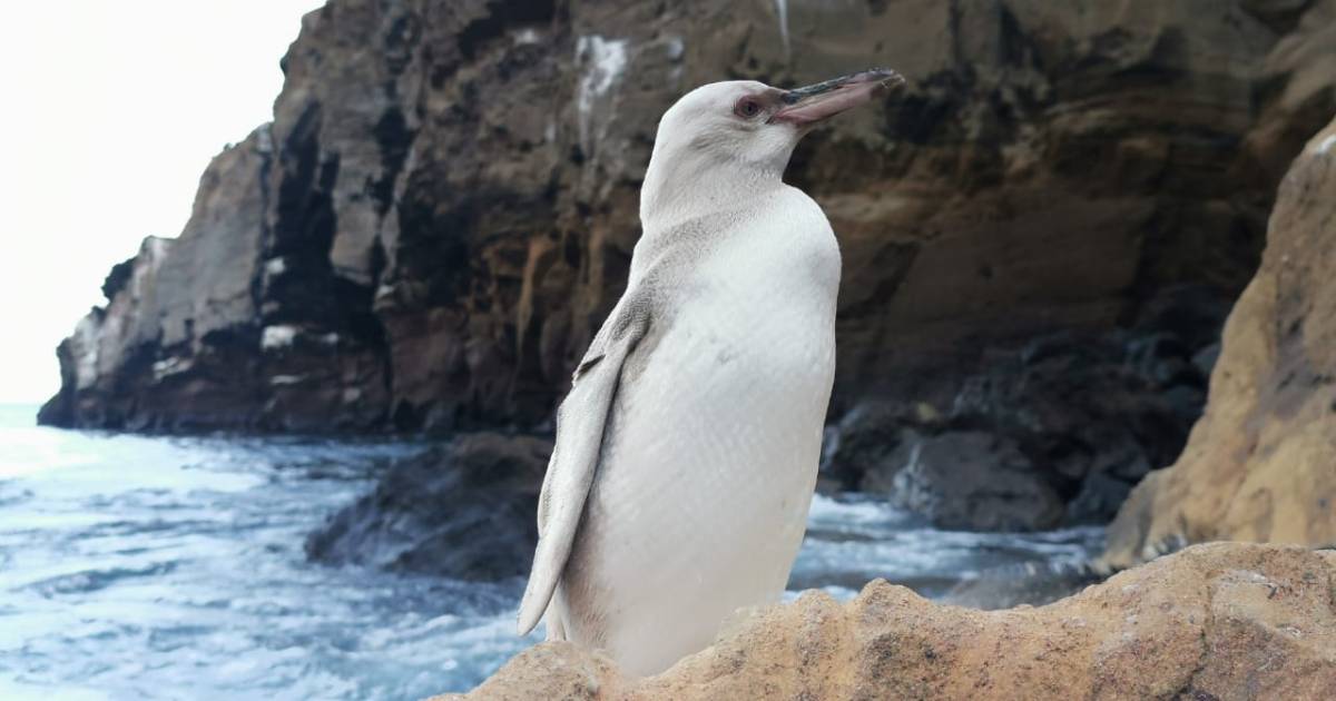 Un pingüino blanco sorprendió a turistas durante su recorrido por la isla Isabela en Ecuador. En redes sociales el evento documentado el pasado 19 de noviembre llamó la atención de usuarios.