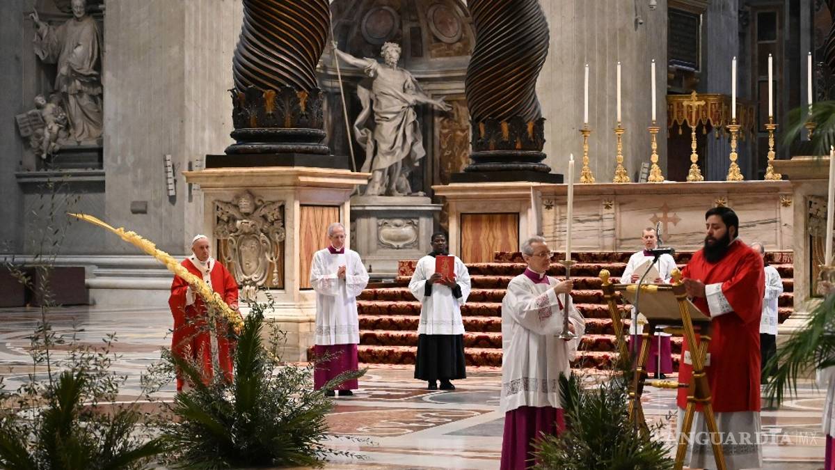 Normalmente, decenas de miles de romanos, turistas y peregrinos con palmas y ramas de olivo habrían llenado una misa al aire libre dirigida por el pontífice. En lugar de eso, Francisco dirigía la ceremonia en la Basílica de San Pedro, que parecía aún más grande al verse tan vacía.