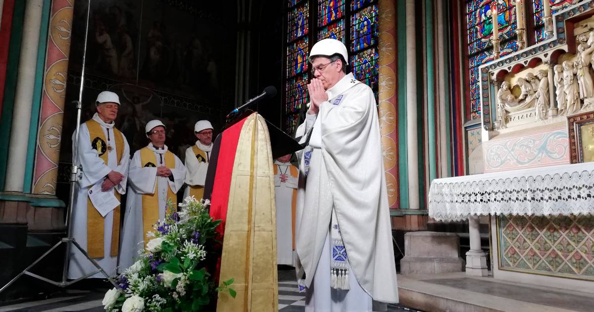 Con cascos y puertas cerradas celebran primera misa en Notre Dame tras incendio