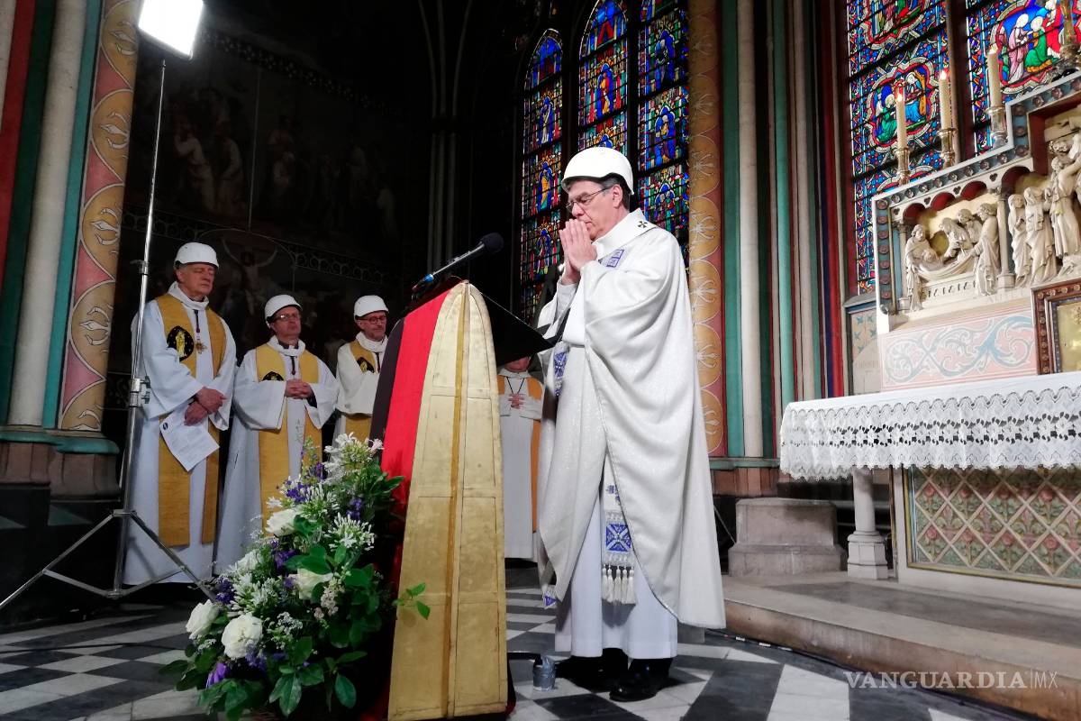 $!Con cascos y puertas cerradas celebran primera misa en Notre Dame tras incendio