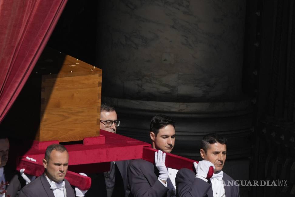 $!El féretro del papa Francisco sale de la basílica de San Pedro del Vaticano a hombros de los porteadores para su funeral.