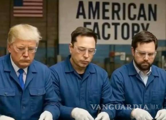 Trump y Musk están sentados uno al lado del otro vistiendo uniformes azules y trabajando en los tennis Nike, mientras que el vicepresidente JD Vance ensambla un iPhone, con un vaquero y un sombrero rojo al que visiblemente le faltan las letras MAGA, según una compilación de videos de inteligencia artificial del relato de una estación de televisión china.