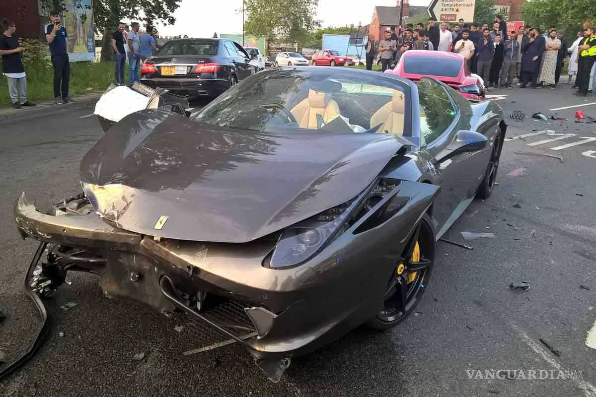 De acuerdo con el reporte policiaco, el conductor del Porsche, un hombre de 26 años, terminó con lesiones leves, mientras que el conductor del Ferrari, cuyo costo es de 200 mil libras esterlinas (unos 5 millones 300 mil pesos mexicanos), huyó a pie.