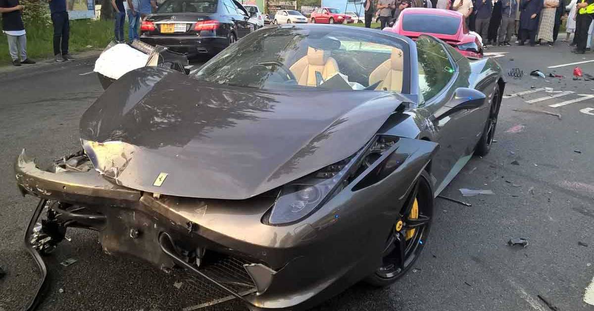 El accidente que está dando la vuelta al mundo, por lo oneroso de la reparación que asciende a más del costo del vehiculo italiano, sucedió en Sheffield, el domingo